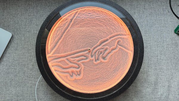 We have seen a handful of comparable contraptions, each accessible as shopper merchandise and DIY builds. They arrive in varied sizes, from massive models that double as espresso tables to extra affordable affairs like this one. All of them observe related rules to attract strains within the sand, leading to pleasing patterns and even recognizable photos. Vigue’s design, like most of them, accomplishes that by dragging a metal ball bearing round throughout a tray of sand. Beneath that tray is a kinematic system with a strong magnet that pulls the ball with sufficient drive to maneuver by means of the sand.
