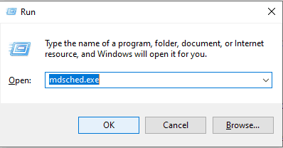 - Kind “mdsched.exe” and press Enter to open the Home windows Reminiscence Diagnostic software.