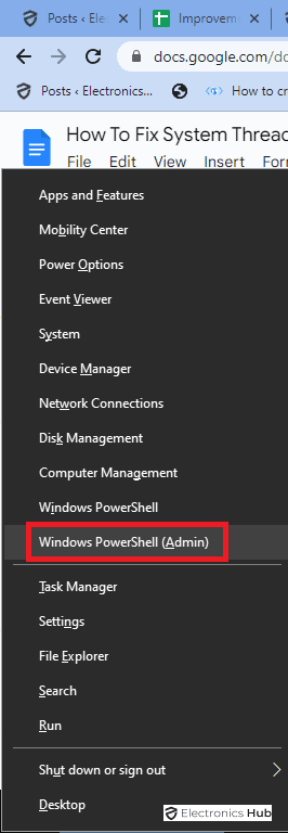 - Press the Home windows key + X and choose “Home windows PowerShell (Admin)” from the menu.