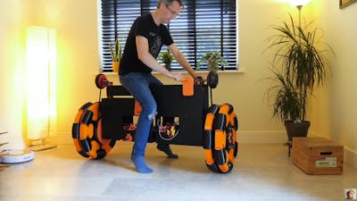 This bike has an omni wheel at every finish, oriented perpendicular to the conventional route of journey. As a result of the 3D-printed omni wheels have free-spinning rollers, the bike can roll ahead or backward with none resistance past friction. However the omni wheels are powered by the hoverboard motors beneath the steerage of the hoverboard’s controllers. So if the bike suggestions, the motors will flip and preserve the rider upright. The bike may also rotate or drive side-to-side when the rider shifts their weight. The bike has two halves that pivot relative to one another, so the rider can manipulate their angle independently.