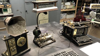 The typical consumer tends to think about a pc as the entire package deal, together with the keyboard and monitor. However the pc is basically simply that dusty field that sits beneath the desk and it will probably function all by itself. Many early computer systems did not even embody the {hardware} for video output and customers have been anticipated to make use of a separate system (a terminal) for interplay. Daniel Ross constructed a Victorian-styled pc just like these classic examples and wanted a approach to work with it, so he mixed a pair of outdated typewriters right into a form of steampunk teletype terminal.